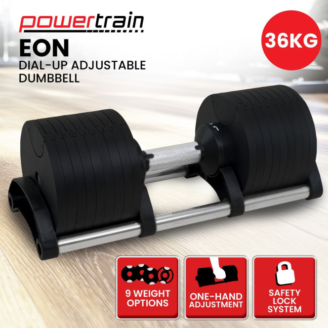 The Eon 36kg Dial-Up Adjustable Dumbbell Home Gym Weights, by Powertrain