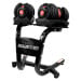 This dumbbell set also comes with two holders to keep the plates in place and make switching weights a breeze.